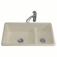 Kohler K-6625-SA Iron/Tones Smart Divide Self-Rimming or Undercounter Kitchen SinkBridging the gap between form and function, and proving that sometimes less is more, Smart Divide kitchen sinks feature an innovative low-profile divider to better accommodate large pots and help keep water where it belongs. This durable Iron/Tones Smart Divide self-rimming or undercounter kitchen sink, constructed of KOHLER Cast Iron, will stand up to years of rugged use while maintaining its rich, lustrous sheen. Features:Color/Finish: Sandbar (-G9) Model Number: K-6625-G930-5/16"L x 16-1/16"W (undercounter)33"L x 18-3/4"W (self-rimming)Constructed of KOHLER Cast IronThe Smart Divide low profile basin divider (patent pending) offers ease of handling large items within the sinkBasin depth: 9"Small/large basin sinkSelf-rimming or undercounter installation optionsNo faucet holesSpecifications