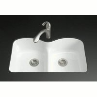 Kohler K-6626-6U-FD Langlade Smart Divide Undercounter Kitchen Sink with Six-Hole Oversized Faucet DrillingBridging the gap between form and function, and proving that sometimes less is more, Smart Divide kitchen sinks feature an innovative low-profile divider to better accommodate large pots and help keep water where it belongs. This durable Langlade Smart Divide undercounter mount kitchen sink, constructed of KOHLER Cast Iron, will stand up to years of rugged use while maintaining its rich, lustrous sheen.Features:Color/Finish: Cane Sugar (-FD) (Pictured in White)Model Number: K-6626-6U-FD The Smart Divide low profile basin divider (patent pending) offers ease of handling large items within the sinkConstructed KOHLER Cast IronExterior dimensions: 33" x 22"Interior dimensions: 15" x 18-3/8" (left basin), 15" x 18-3/8" (right basin)Basin depth: 9"Double equal basin sinkUndercounter installationSix-hole oversized faucet drillingSpecifications