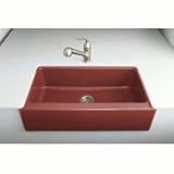 Kohler K-6546-4U-R1 Dickinson Apron-Front, Undercounter Kitchen Sink with Four-Hole Oversized CentersBring distinctive KOHLER styling to a standard sink space with the Dickinson apron-front kitchen sink. Constructed of durable KOHLER Cast Iron, this undercounter model offers a large basin and features a four-hole oversized faucet drilling.Features:Color/Finish: Roussillon Red (-R1) Model Number: K-6546-4U-R1 Exterior dimensions: 33"L x 22-1/8"WInterior dimensions: 30"L x 15"WBasin depth: 8"Specifications